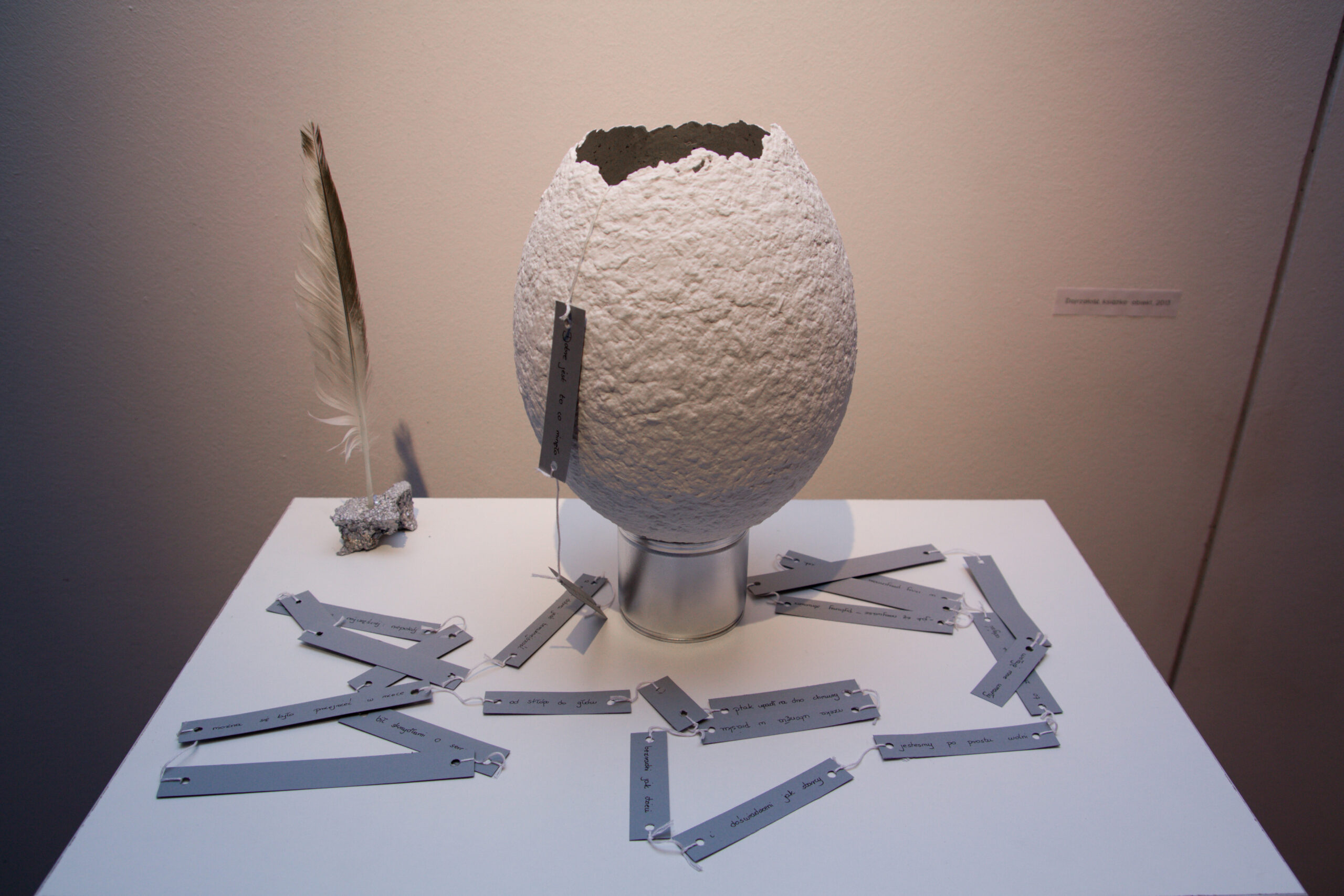 Dojrzałość, 2013 Książka – obiekt Katarzyna Zuzanna Krakowiak | Zaktualizowany: Książka artystyczna DojrzałośćDobre jest to co minęłodobre jest to co nadchodzia nawet dobra jest teraźniejszośćW gnieździe uplecionym z ciałażył ptakbił skrzydłami o sercenazywaliśmy go najczęściej: niepokója czasem: miłośćwieczoramiszliśmy nad rwącą rzekę żalumożna się było przejrzeć w rzeceod stóp do główterazptak upadł na dno chmuryrzeka utonęła w piaskubezradni jak dziecii doświadczeni jak starcyjesteśmy po prostu wolnito znaczy gotowi odejśćw nocy przychodzi miły staruszekujmującym gestem zaprasza– jak się nazywasz – pytamy strwożeni– Seneka -tak mówią ci którzy kończyli gimnazjuma ci ktorzy nie znają łacinywołają mnie: umarły Zbigniew Herbert